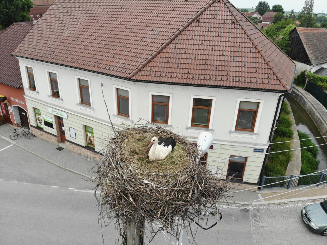 Čapí rodinka má zatím 3 čápata. Snad se je podaří vychovat.