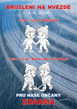 3.1.2026 13:00 - 14:15 - bruslení 14:30 - 15:45 - hokej bez výstroje PRO NAŠE OBČANY ZDARMA